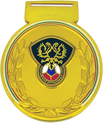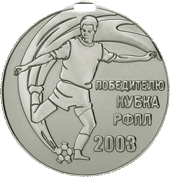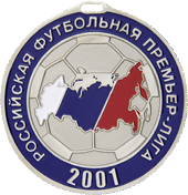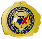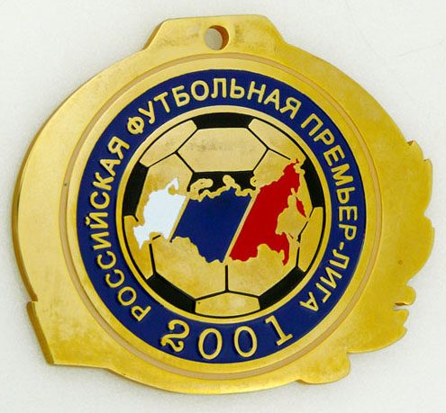 РОССИЙСКАЯ ФУТБОЛЬНАЯ ПРЕМЬЕР-ЛИГА Латунь, без эмали (аверс) Латунь, мягкая эмаль (реверс) Размеры: Ø 50 мм Варианты цвета покрытия: золотой, серебряный 2001-2003 годы |