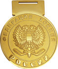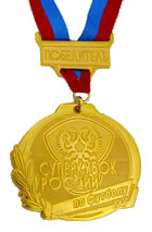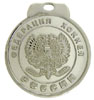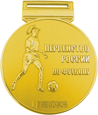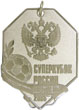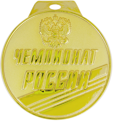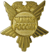 ЧЕМПИОНАТ РОССИИ Латунь, без эмали Размеры: 57х61 мм (медаль) 16х16 мм (знак к медали) Варианты цвета покрытия: золотой, серебряный, бронзовый 2001 год |