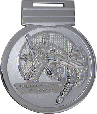 ЧЕМПИОНАТ РОССИИ ПО ХОККЕЮ ФЕДЕРАЦИЯ ХОККЕЯ РОССИИ Латунь, без эмали (аверс и реверс) Размеры: 87х70 мм Варианты цвета покрытия: золотой, серебряный, бронзовый 2003 год |