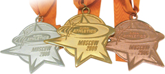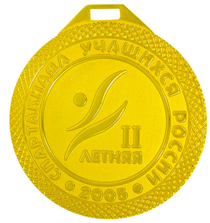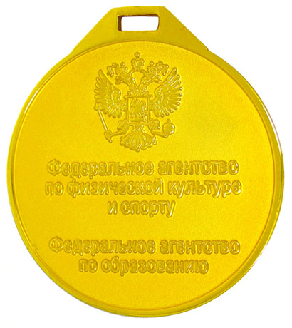 II ЛЕТНЯЯ СПАРТАКИАДА УЧАЩИХСЯ РОССИИ 2005 ФЕДЕРАЛЬНОЕ АГЕНТСТВО ПО ФИЗИЧЕСКОЙ КУЛЬТУРЕ И СПОРТУ ФЕДЕРАЛЬНОЕ АГЕНТСТВО ПО ОБРАЗОВАНИЮ Латунь, без эмали (аверс, реверс) Размеры: Ø 50 мм Варианты цвета покрытия: золотой, серебряный, бронзовый |