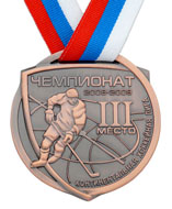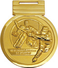 ПЕРВЕНСТВО РОССИИ ПО ХОККЕЮ «РЕГИОН - ЦЕНТР» ФЕДЕРАЦИЯ ХОККЕЯ РОССИИ Латунь, без эмали (аверс) Латунь, мягкая эмаль (реверс) Размеры: Ø 55 мм Варианты цвета покрытия: золотой, серебряный, бронзовый |