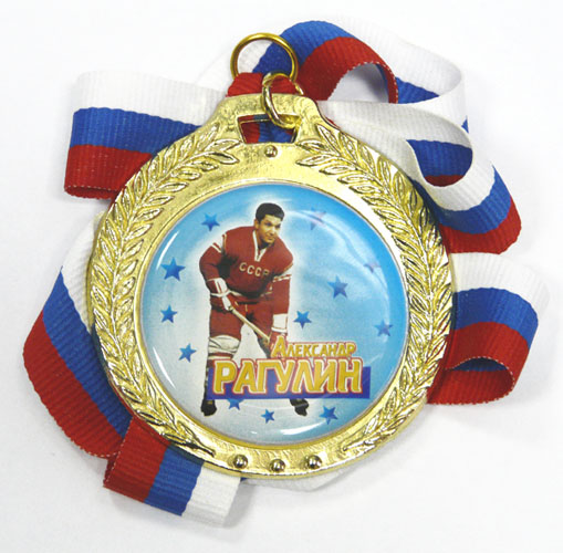 ВСЕРОСИЙСКИЙ ТУРНИР ЮНЫХ ХОККЕИСТОВ ПАМЯТИ АЛЕКСАНДРА РАГУЛИНА Специальный сплав, без эмали, заливка (аверс) Специальный сплав, без эмали (реверс) Размеры: Ø 60 мм Варианты цвета покрытия: золотой, серебряный, бронзовый 2002-2008 год |