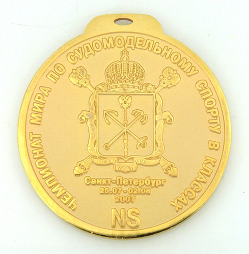 NAVIGA – VI WORLD CHAMPIONSHIP NS ЧЕМПИОНАТ МИРА ПО СУДОМОДЕЛЬНОМУ СПОРТУ В КЛАССАХ NS САНКТ-ПЕТЕРБУРГ 25.07 - 02.08 2007 Латунь, без эмали (аверс, реверс) Размеры: Ø 70 мм (подвеска) 32х36 мм (колодка) Варианты цвета покрытия: золотой, серебряный, бронзовый |