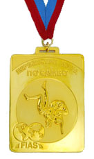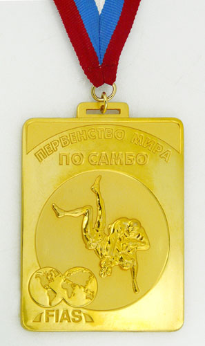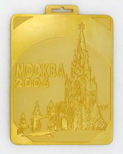 ПЕРВЕНСТВО МИРА ПО САМБО FIAS МОСКВА – 2006 Латунь, без эмали (аверс, реверс) Размеры: 65х82 мм Варианты цвета покрытия: золотой, серебряный, бронзовый |