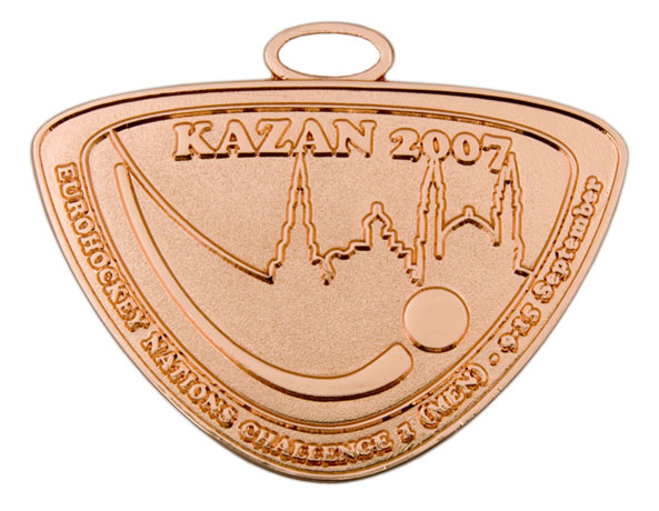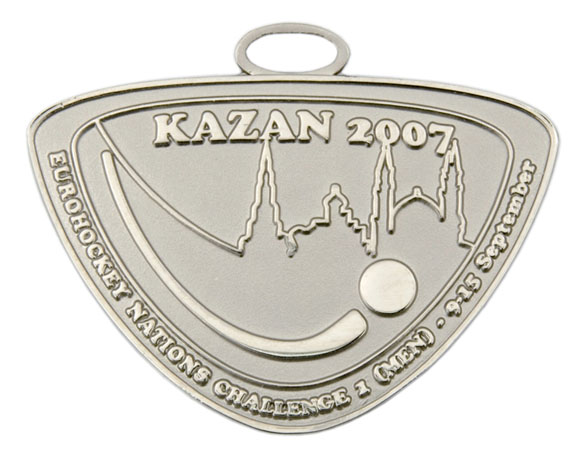 KAZAN 2007 EUROHOCKEY NATIONS CHALLENGE 1 (MEN) 9-15 SEPTEMBER EHF Латунь, мягкая эмаль (аверс, реверс – памятная медаль) Латунь, без эмали (аверс, реверс – наградная медаль) Размеры: 59 х 40 мм Варианты цвета покрытия: золотой, серебряный, бронзовый |
