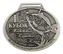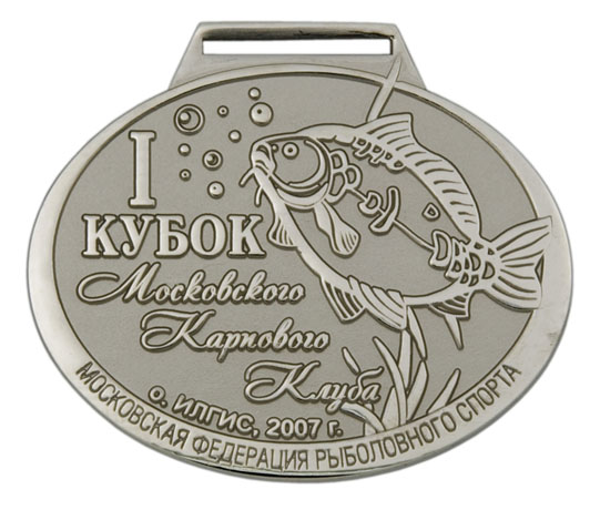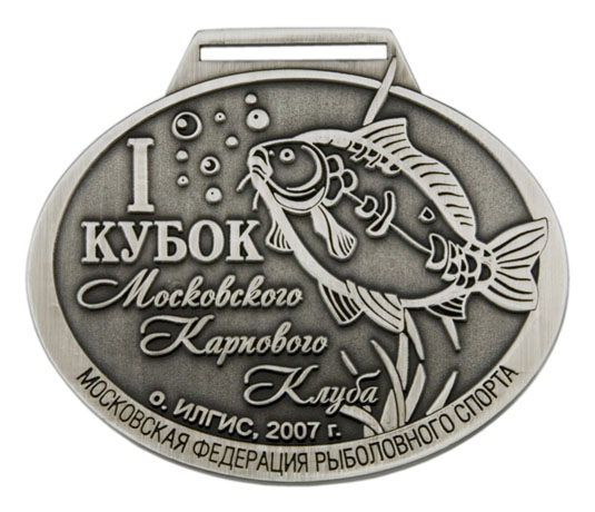 I КУБОК МОСКОВСКОГО КАРПОВОГО КЛУБА о.ИЛГИС, 2007 г. МОСКОВСКАЯ ФЕДЕРАЦИЯ РЫБОЛОВНОГО СПОРТА Латунь, без эмали (аверс, реверс) Размеры: 65 х 56 мм Варианты цвета покрытия: золотой, серебряный, античное серебро, бронзовый |