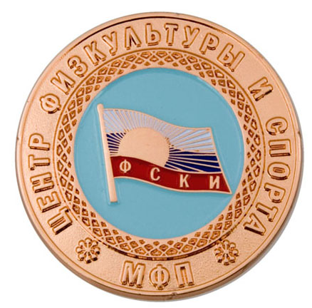 ЦЕНТР ФИЗКУЛЬТУРЫ И СПОРТА МФП Латунь, мягкая эмаль (аверс) Латунь, без эмали (реверс) Размеры: Ø 45 мм Варианты цвета покрытия: золотой, серебряный, бронзовый |
