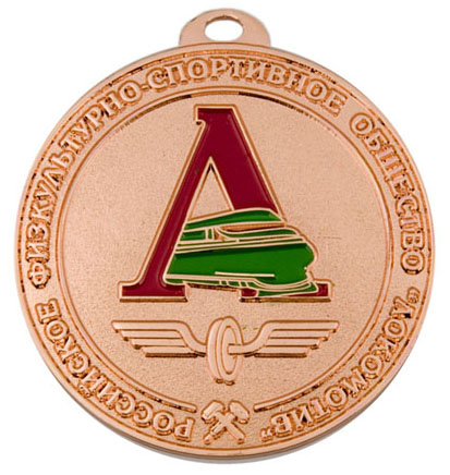 РОССИЙСКОЕ ФИЗКУЛЬТУРНО-СПОРТИВНОЕ ОБЩЕСТВО «ЛОКОМОТИВ» Латунь, мягкая эмаль (аверс) Латунь, без эмали (реверс) Размеры: Ø 50 мм Варианты цвета покрытия: золотой, серебряный, бронзовый |