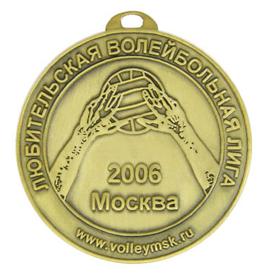 ЛЮБИТЕЛЬСКАЯ ВОЛЕЙБОЛЬНАЯ ЛИГА 2006 МОСКВА Латунь, без эмали (аверс, реверс) Размеры: Ø 40 мм Цвет покрытия: золотой |