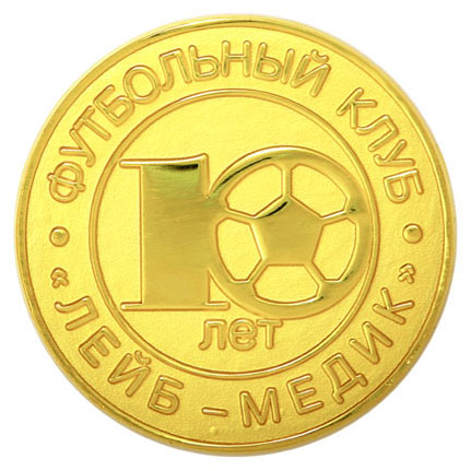 ФУТБОЛЬНЫЙ КЛУБ «ЛЕЙБ-МЕДИК» 10 ЛЕТ Латунь, без эмали (аверс, реверс) Размеры: Ø 50 мм Цвет покрытия: золотой |