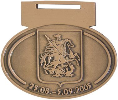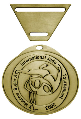 X MOSCOW SUPER A INTERNATIONAL JUDO TOURNAMENT 2003 Латунь, без эмали (аверс и реверс) Размеры: 70х62,6 мм (подвеска) 56х33 мм (колодка) Варианты цвета покрытия: золотой, серебряный, бронзовый 2003 год |