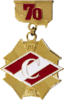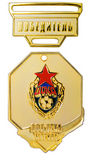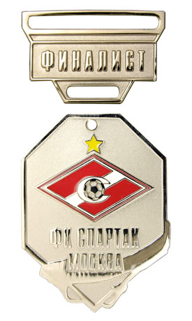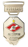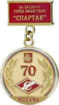 ЗА ЗАСЛУГИ ПЕРЕД ОБЩЕСТВОМ «СПАРТАК» Латунь, твердая эмаль Размеры: Ø 29 мм (подвеска) 23х13,1 мм (колодка) Застежка на колодке: цанга Цвет покрытия: золотой 2005 год |