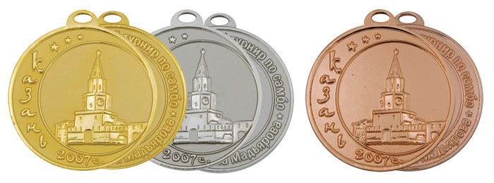 КАЗАНЬ – 2007 МЕЖДУНАРОДНЫЙ ТУРНИР ПО САМБО ПАМЯТИ МАДЬЯРОВА Латунь, без эмали (аверс, реверс) Размеры: Ø 50 мм Варианты цвета покрытия: золотой, серебряный, бронзовый |