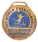 XVII WORLD CHAMPIONSHIP 2005 WOMENS HANDBALL DECEMBER 5-18 INTERNATIONAL HANDBALL FEDERATION Латунь, без эмали (аверс, реверс) Размеры: Ø 70 мм Цвет покрытия: бронзовый |