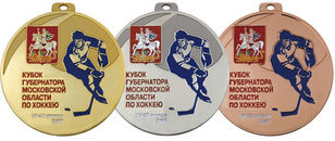 КУБОК ГУБЕРНАТОРА МОСКОВСКОЙ ОБЛАСТИ ПО ХОККЕЮ 24-28 АВГУСТА 2007 ГОДА Латунь, мягкая эмаль (аверс, реверс) Размеры: Ø 70 мм Варианты цвета покрытия: золотой, серебряный, бронзовый |