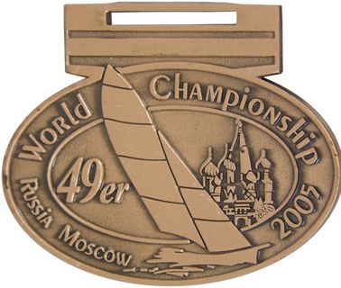 49er WORLD CHAMPIONSHIP 2005 Латунь, без эмали (аверс и реверс) Размеры: 65х43,3 мм Варианты цвета покрытия: золотой, серебряный, бронзовый 2005 год |