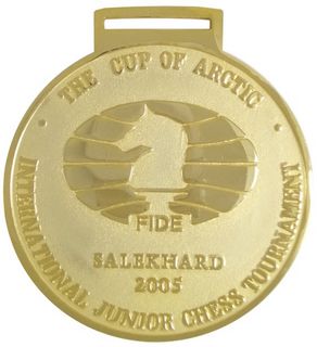 КУБОК АРКТИКИ ТУРНИР ПО ШАХМАТАМ Латунь, без эмали (аверс и реверс) Размер: 70х76,8 мм Варианты цвета покрытия: золотой, серебряный, бронзовый 2005 год |