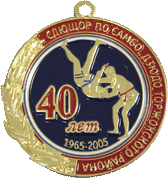 40 ЛЕТ СДЮШОР ПО САМБО И ДЗЮДО ТОРЖОКСКОГО РАЙОНА Железо, мягкая эмаль Размеры: Ø 38 мм Цвет покрытия: золотой 2005 год |