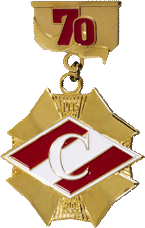СПАРТАК 70 Латунь, мягкая эмаль Размеры: Ø 33 мм (подвеска) 22х15,55 мм (колодка) Застежка на колодке: булавка Цвет покрытия: золотой 2005 год |