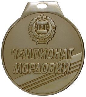 ЧЕМПИОНАТ МОРДОВИИ Латунь, без эмали Размеры: Ø 50 мм Варианты цвета покрытия: золотой, серебряный, бронзовый 2005 год |