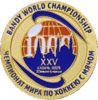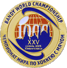 ЧЕМПИОНАТ МИРА ПО ХОККЕЮ С МЯЧОМ Латунь, твердая эмаль (аверс и реверс) Размеры: Ø 50 мм Цвет покрытия: золотой 2005 год |