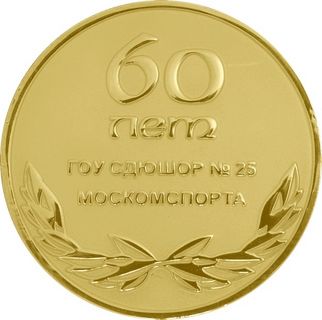60 ЛЕТ ГОУ СДЮШОР № 25 МОСКОМСПОРТА Латунь, без эмали (аверс и реверс) Размеры: Ø 55 мм Варианты цвета покрытия: золотой, серебряный, бронзовый 2005 год |