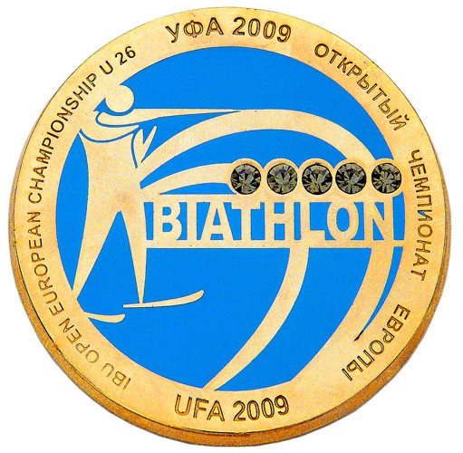 Памятная медаль УФА 2009 ОТКРЫТЫЙ ЧЕМПИОНАТ ЕВРОПЫ UFA 2009 IBU OPEN EUROPEAN CHAMPIONSHIP U26 BIATHLON (аверс) Латунь, мягкая эмаль, стразы (Ø 5 мм, 5 шт) (аверс) Латунь без эмали (реверс) Размеры: Ø 80 мм Цвет покрытия: золотой UFA Значок открытого чемпионата Европы по биатлону 2009 года в Уфе (Башкортостан) Латунь, мягкая эмаль Размеры: 35х35 мм Застёжка: цанга UFA Значок открытого чемпионата Европы по биатлону 2009 года в Уфе (Башкортостан) Латунь, мягкая эмаль Размеры: Ø 35 мм Застёжка: цанга |