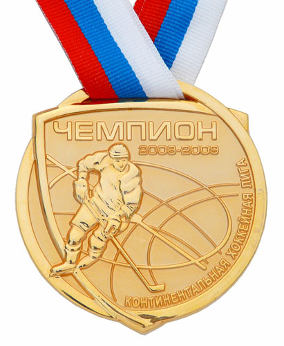 Наградные медали КОНТИНЕНТАЛЬНАЯ ХОККЕЙНАЯ ЛИГА ЧЕМПИОН 2008-2009 (аверс) КХЛ (реверс)