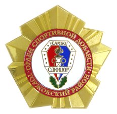 ОРДЕН СПОРТИВНОЙ ДОБЛЕСТИ ТОРЖОКСКИЙ РАЙОН Латунь, мягкая эмаль Размеры: 62х60,2 мм Варианты цвета покрытия: золотой, серебряный, бронзовый 2005 год |