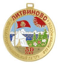 ЛИТВИНОВО 50 ЛЕТ Латунь, мягкая эмаль Размеры: Ø 55 мм Цвет покрытия: золотой 2005 год |