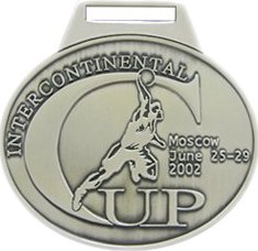 INTERCONTINENTAL CUP MOSCOW 2002 Латунь, без эмали (аверс и реверс) Размеры: 70х67,77 мм Варианты цвета покрытия: золотой, серебряный, бронзовый 2002 год |