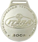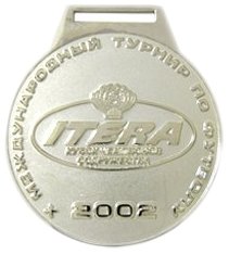 МЕЖДУНАРОДНЫЙ ТУРНИР ПО ФУТБОЛУ ITERA 2002 Латунь, без эмали (аверс и реверс) Размеры: 65х73 мм Цвет покрытия: серебряный 2002 год |