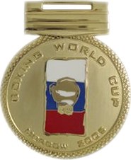 MASTERS WORLD CHAMPIONSHIP KRASNOGORSK – RUSSIA 2005 Латунь, твердая эмаль (аверс) Латунь, без эмали (реверс) Размеры: 63х10,8 мм (подвеска) 20х40 мм (колодка) Цвет покрытия: серебряный |