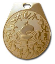 ВСЕРОССИЙСКАЯ ФЕДЕРАЦИЯ КАРАТЭДО Латунь, мягкая эмаль Размеры: Ø 70 мм Цвет покрытия: золотой 2005 год |