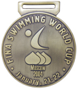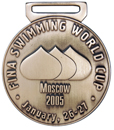 FINA SWIMMING WORLD CUP MOSCOW 2004, 2005 Латунь, без эмали (аверс и реверс) Размеры: Ø 65 мм Варианты цвета покрытия: золотой, серебряный, бронзовый
