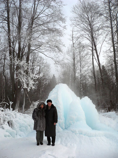 до 25 метров. Сильный мороз сотворил из водяных брызг