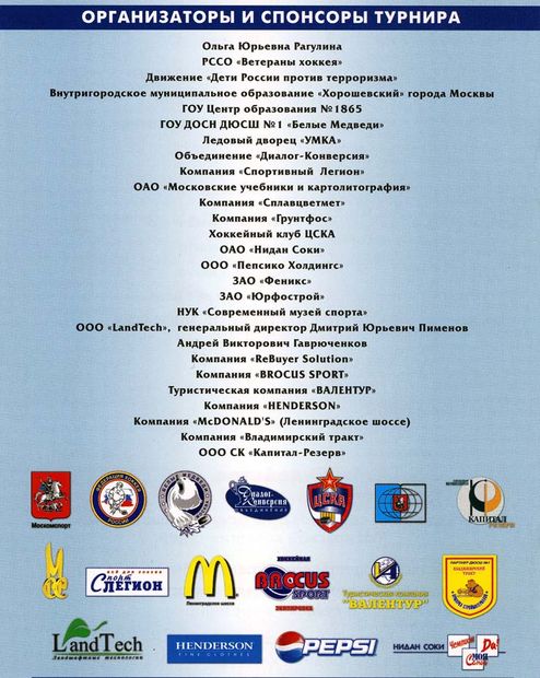 Победители и призеры Турнира юных хоккеистов "Александр Рагулин - 65" Первое место - ЦСКА Москва Второе место - "СПАРТАК" Москва Третье место - "ВИТЯЗЬ" Подольск