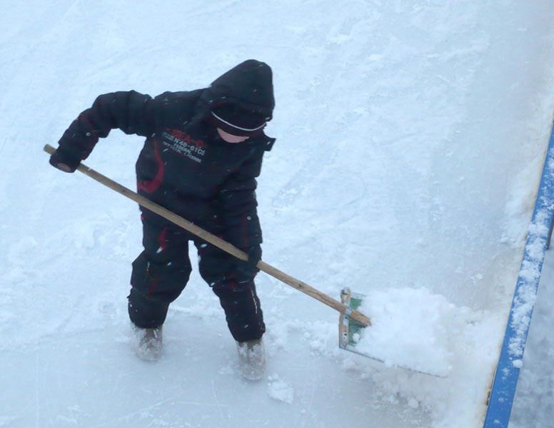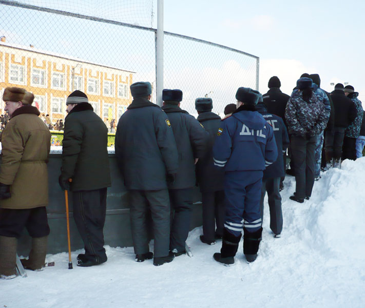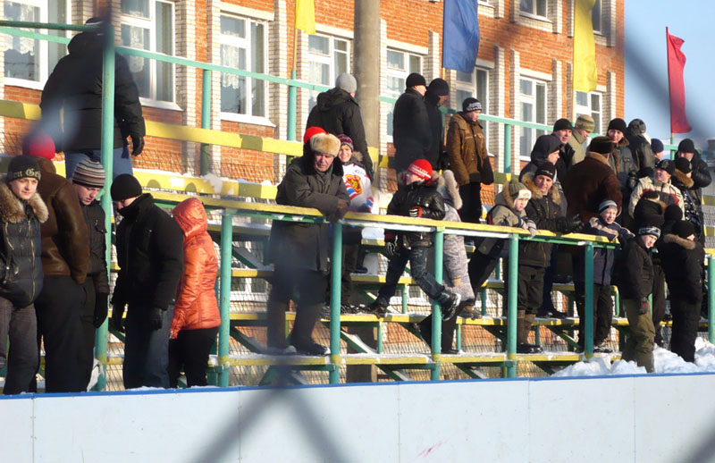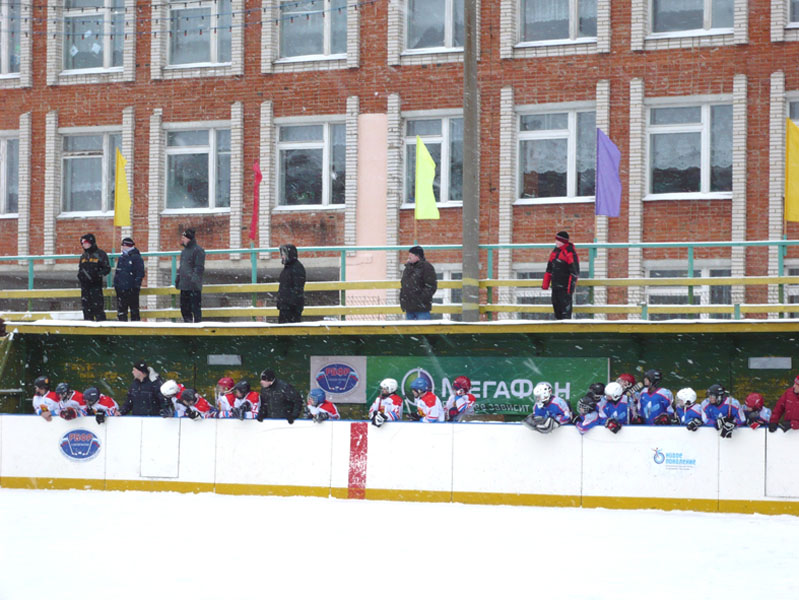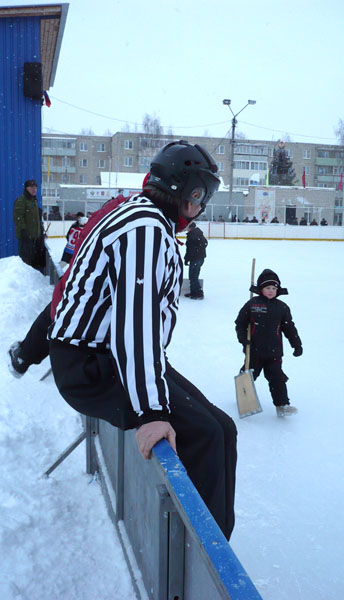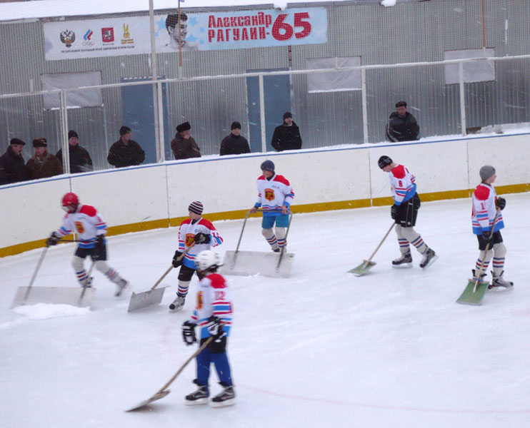 В перерывах зрители дружно готовили ледовую площадку. Малыши с огромной радостью выходили на лёд, пусть пока не с клюшкой, но хоть с лопатой