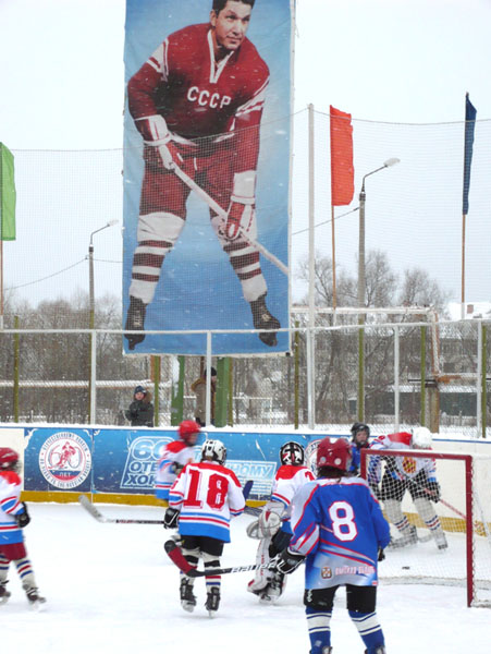Под сенью великого Рагулина шла напряжённая борьба у ворот хозяев, и тут же в очередную атаку устремлялся нападающий Женя Дёмин, которого в 3-летнем возрасте благословил на хоккейную карьеру сам Александр Павлович.
