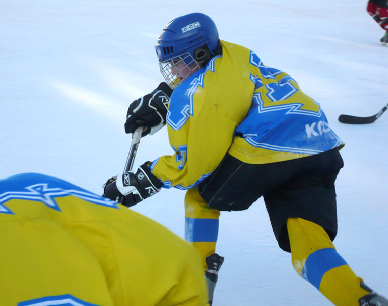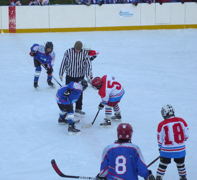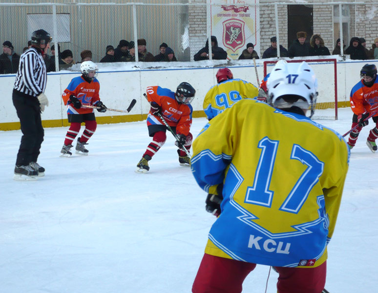 Команды – на лёд! Всё готово. Вбрасывание, и матч за 3-е место между командами «Судогодец» и «Юность» из посёлка Черлак Омской области начался.
