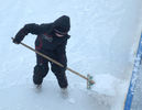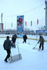 Перед началом игры хозяева турнира, команда «Судогодец», меняет клюшки на скребки и готовит лёд.