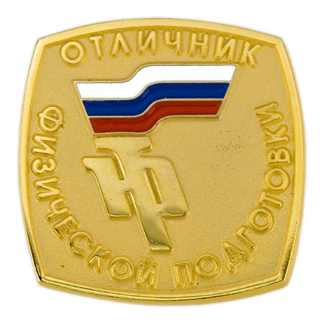 ОТЛИЧНИК ФИЗИЧЕСКОЙ ПОДГОТОВКИ Латунь, мягкая эмаль (аверс) Латунь, без эмали (реверс) Размеры: 26 х 26 мм Застежка: цанга |