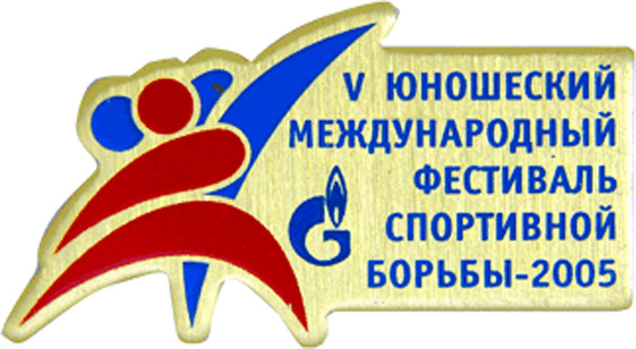 V ЮНОШЕСКИЙ МЕЖДУНАРОДНЫЙ ФЕСТИВАЛЬ СПОРТИВНОЙ БОРЬБЫ 2005 Значок Латунь, фотопринт Размеры: 25 х 13 мм Застежка: цанга |