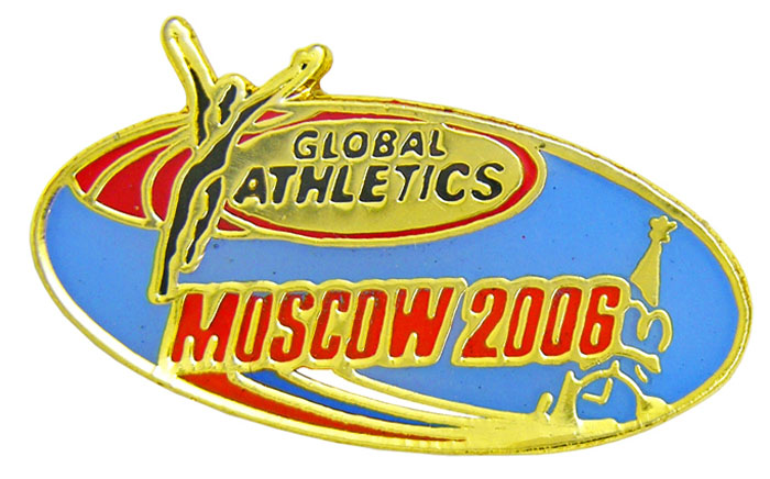 GLOBAL ATHLETICS MOSCOW 2006 Значок Латунь, мягкая эмаль Размеры: 19 х 12 мм Застежка: цанга |