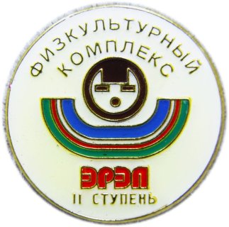 ФИЗКУЛЬТУРНЫЙ КОМПЛЕКС ЭРЭЛ II СТУПЕНЬ Значок Железо, мягкая эмаль Размеры: Ø 18 мм Застежка: цанга
