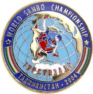 WORLD SAMBO CHAMPIONSHIP ТАДЖИКИСТАН - 2004 Значок Железо, мягкая эмаль Размеры: Ø 20 мм Застежка: цанга |