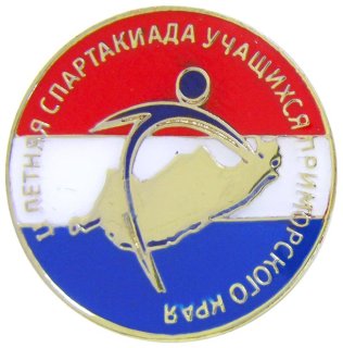 II ЛЕТНЯЯ СПАРТАКИАДА УЧАЩИХСЯ ПРИМОРСКОГО КРАЯ Значок Железо, мягкая эмаль Размеры: Ø 22 мм Застежка: цанга |
