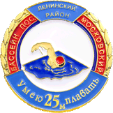 УМЕЮ ПЛАВАТЬ 25 м БАССЕЙН ПОСЕЛКА МОСКОВСКИЙ Значок Железо, мягкая эмаль Размеры: Ø 30 мм Застежка: цанга |