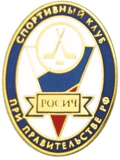 СПОРТИВНЫЙ КЛУБ ПРИ ПРАВИТЕЛЬСТВЕ РФ РОСИЧ Значок Латунь, твердая эмаль Размеры: 15,15х20 мм Застежка: цанга |