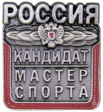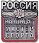 РОССИЯ КАНДИДАТ МАСТЕР СПОРТА Латунь, мягкая эмаль Размеры: 20х22 мм Цвет покрытия: серебряный 2007 год |